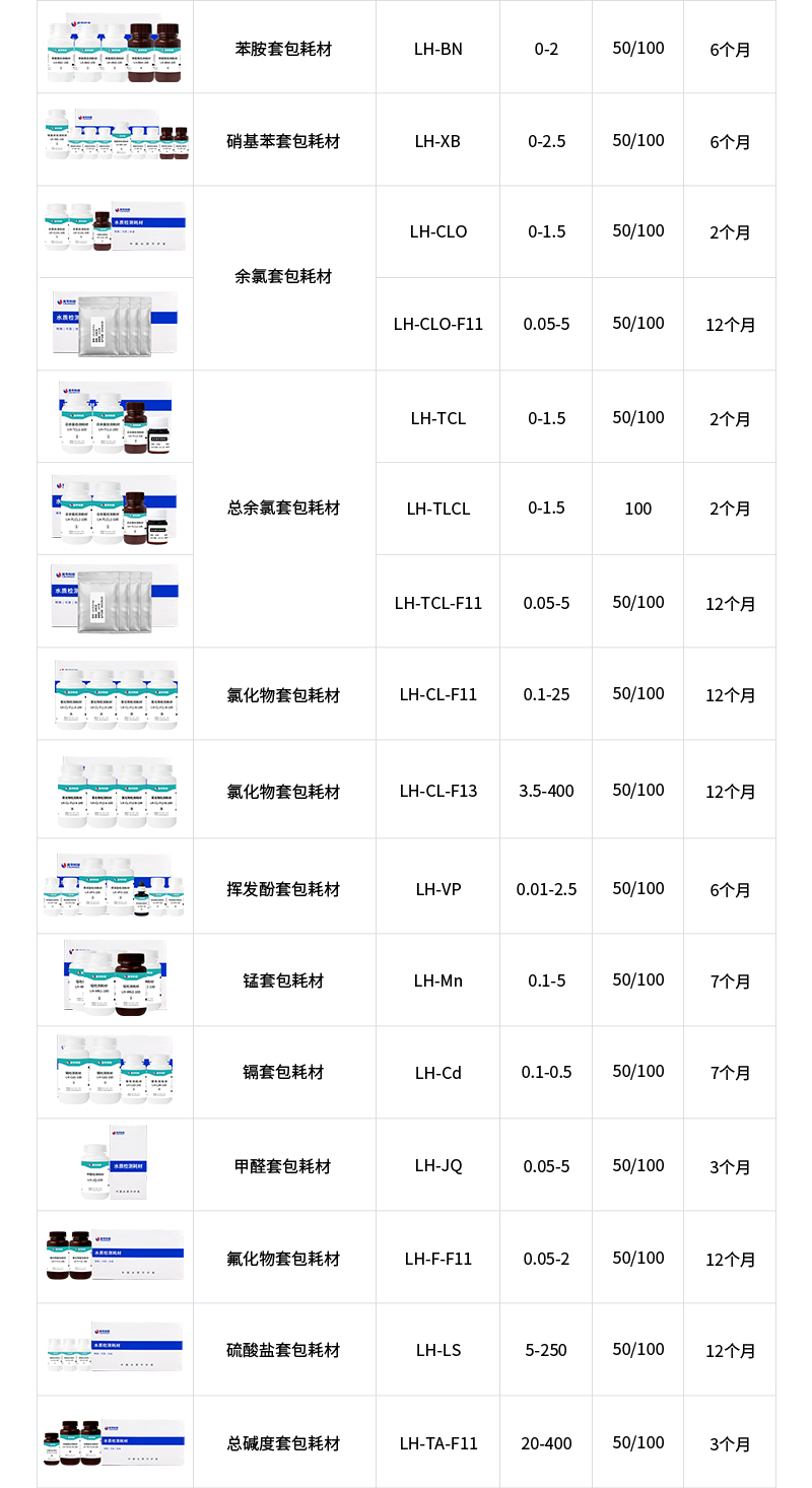 水質污染物液體耗材技術參數: