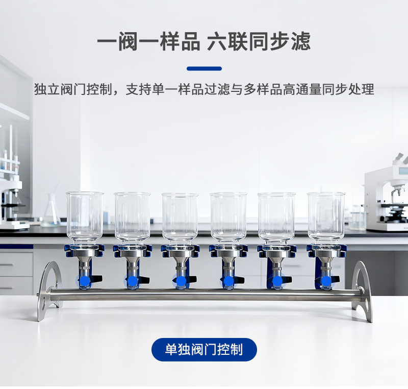 3、每個樣品配單獨閥門控制,可單獨過濾一個樣品,亦可同時過濾多個樣品;