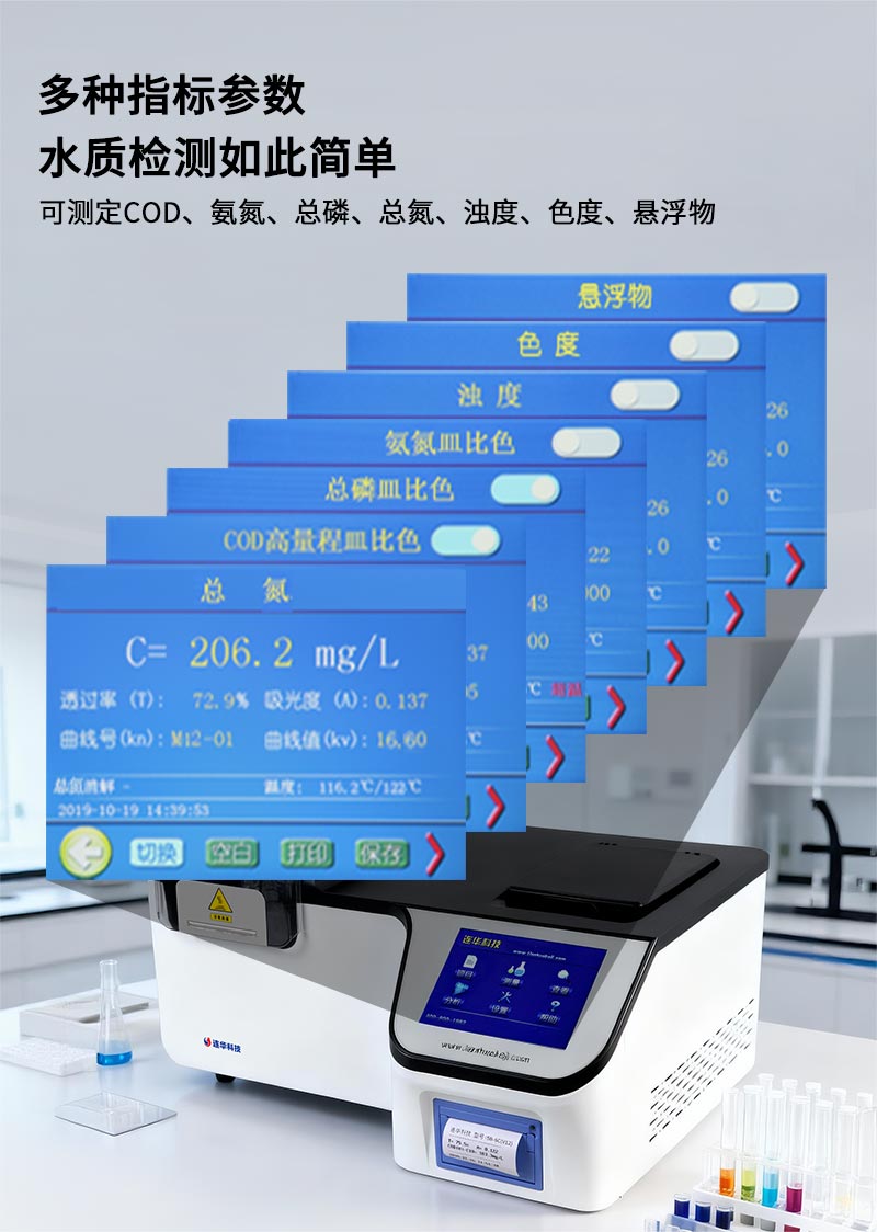 2.多光路無干擾系統:具有多光路無干涉系統,可測定COD、氨氮、總磷、總氮、濁度、色度、懸浮物。支持皿比色和管比色兩種比色方式;