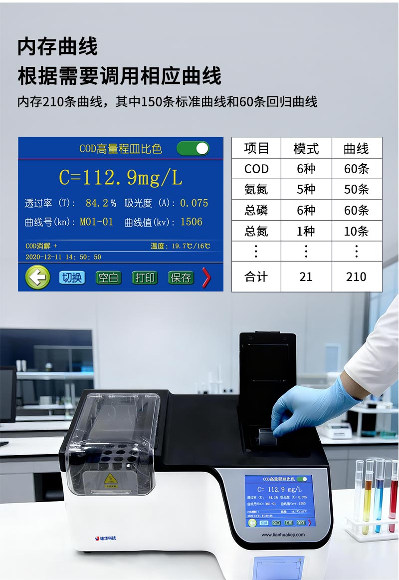 3.自帶消解器:儀器自帶消解器,具有智能升溫、智能定時和延時保護等功能,可對水樣進行消解;