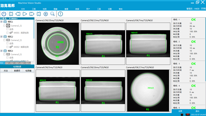 瓶蓋頂部、底部、側(cè)面軟件檢測(cè)界面