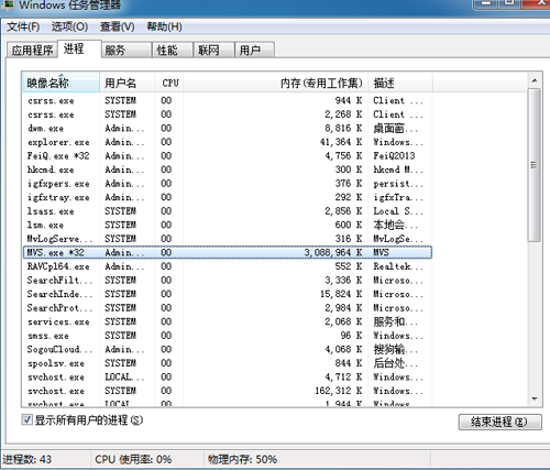 電腦配置8GB內存時,MVS1.7運行內存可以達到6.8GB,MVS1.6運行內存智能達到3GB