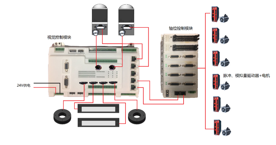 | 產(chǎn)品主要功能,運動控制模塊,相機(jī)供電觸發(fā)控制模塊,光源控制模塊,圖像處理系統(tǒng),輸入輸出IO信號模塊。 |